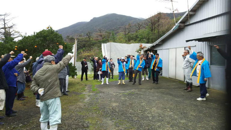 本日2月1日に、徳之島町柑橘生産組合によるたんかんのハサミ入れ式が行われました。