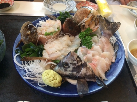 最後は地元のお店「ほたる」でワカメ料理や地魚のお刺身等の昼食。