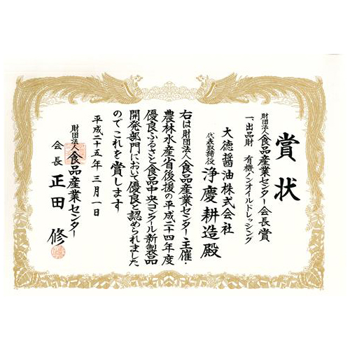 国内の有機JAS認定農場の厳選された大豆・小麦を100%使用し、多様な微生物の力でじっくりと時間をかけて醸す国産有機醤油と国産有機野菜でつくったノンオイルドレッシングです。