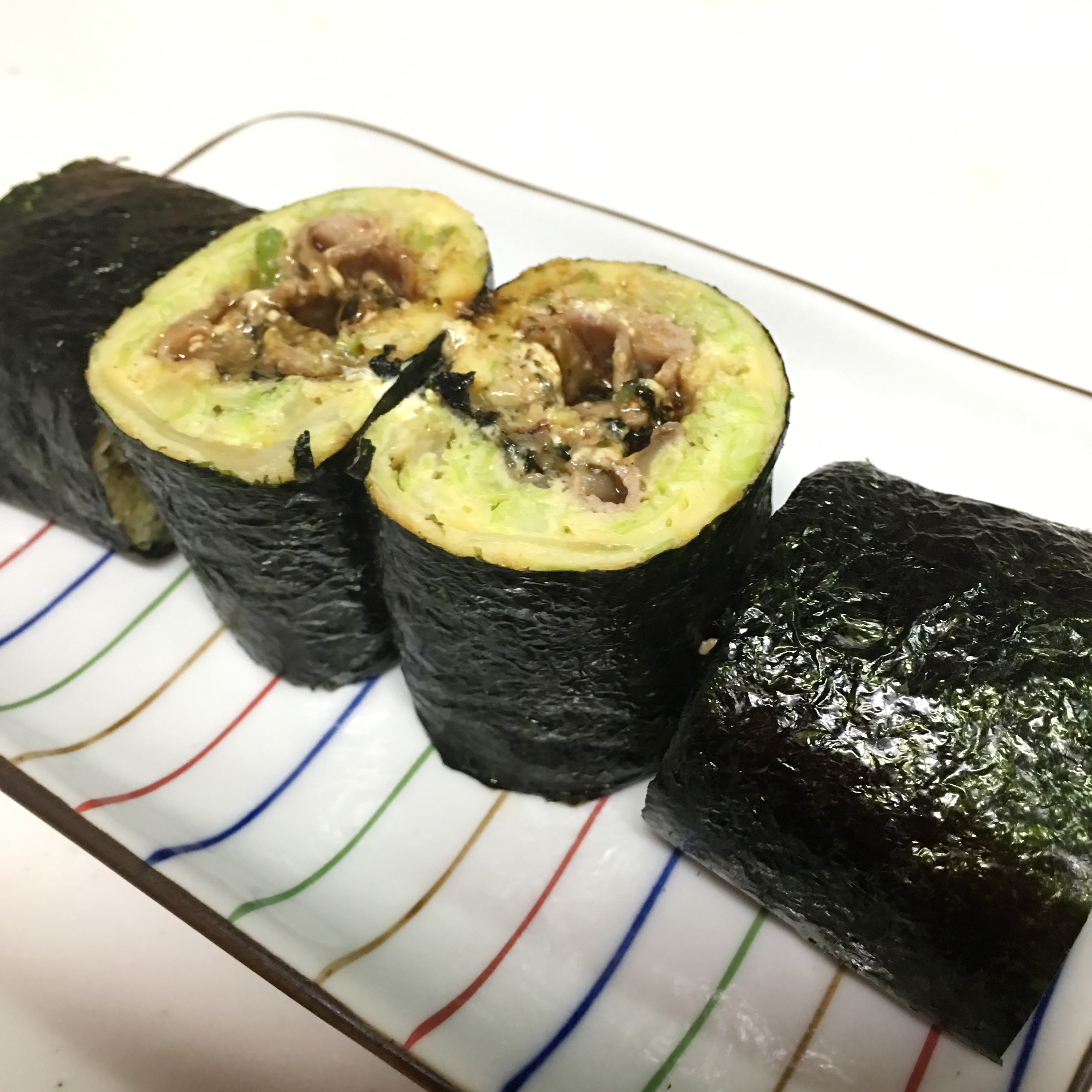 お好み焼きなんか、巻寿司風に巻いちゃいます♪