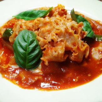 パスタの代わりにはなびらたけで、トマトソース炒めにしました♪