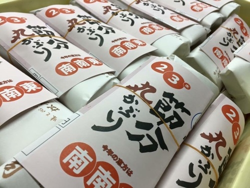 節分の時は、常時販売をさせていただいている巻寿司と節分の日限定メニューの節分巻を販売させていただきました。さらに、今年は近松巻のプレ販売もさせていただきました。