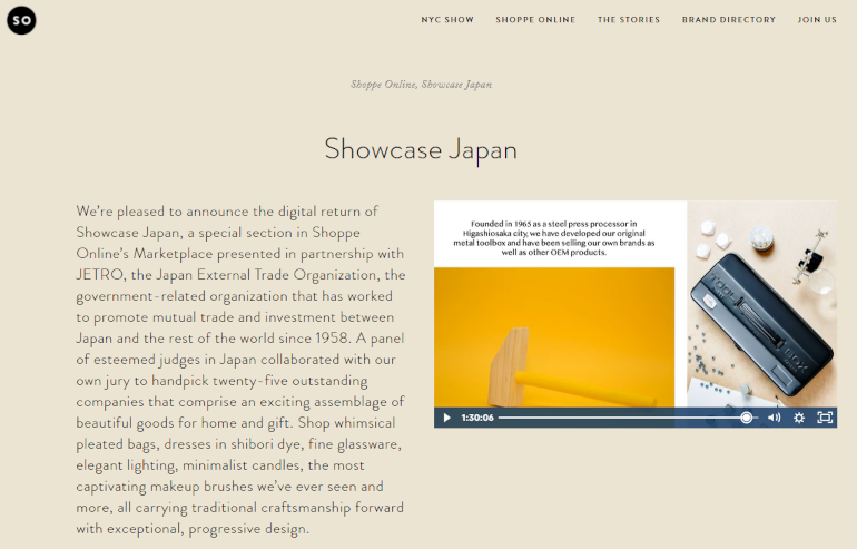 ニューヨークのオンライン展示会 Shoppe On にてビデオ公開