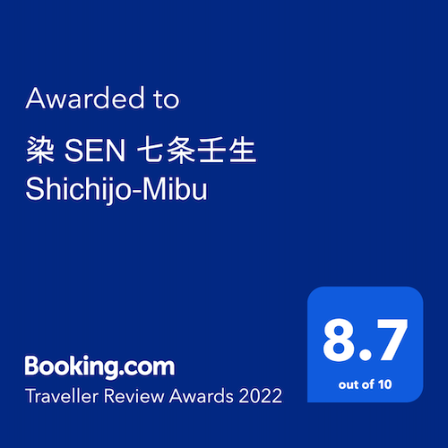 Booking.com Traveller Review Awards 2022 受賞!① 染 SEN 七条壬生 〜にノ彩〜