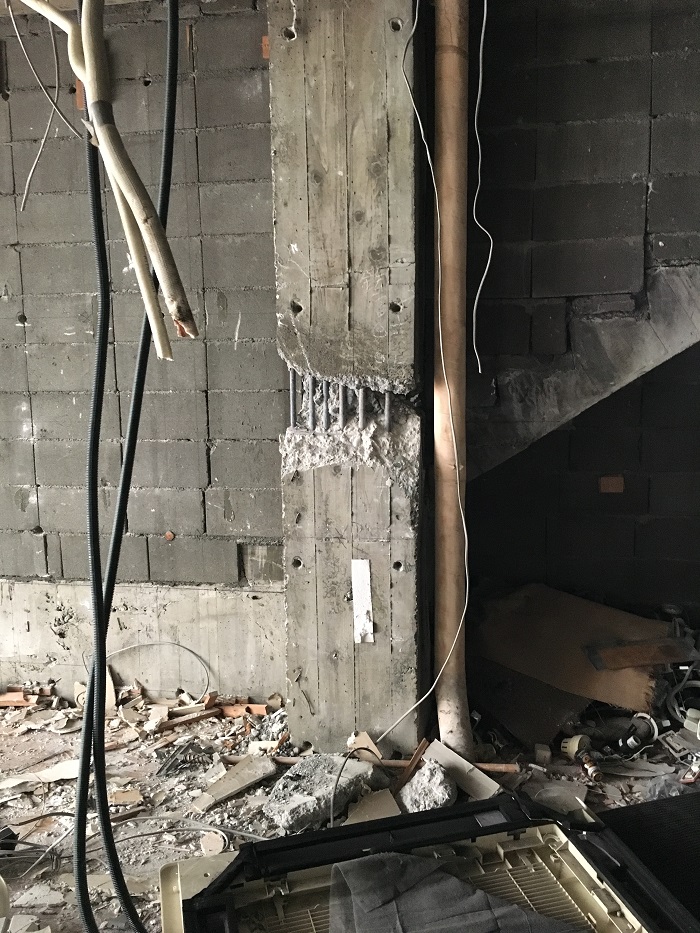 この砕けてしまった柱を見た瞬間、よくぞビルが潰れずに耐えてくれたと思いました。