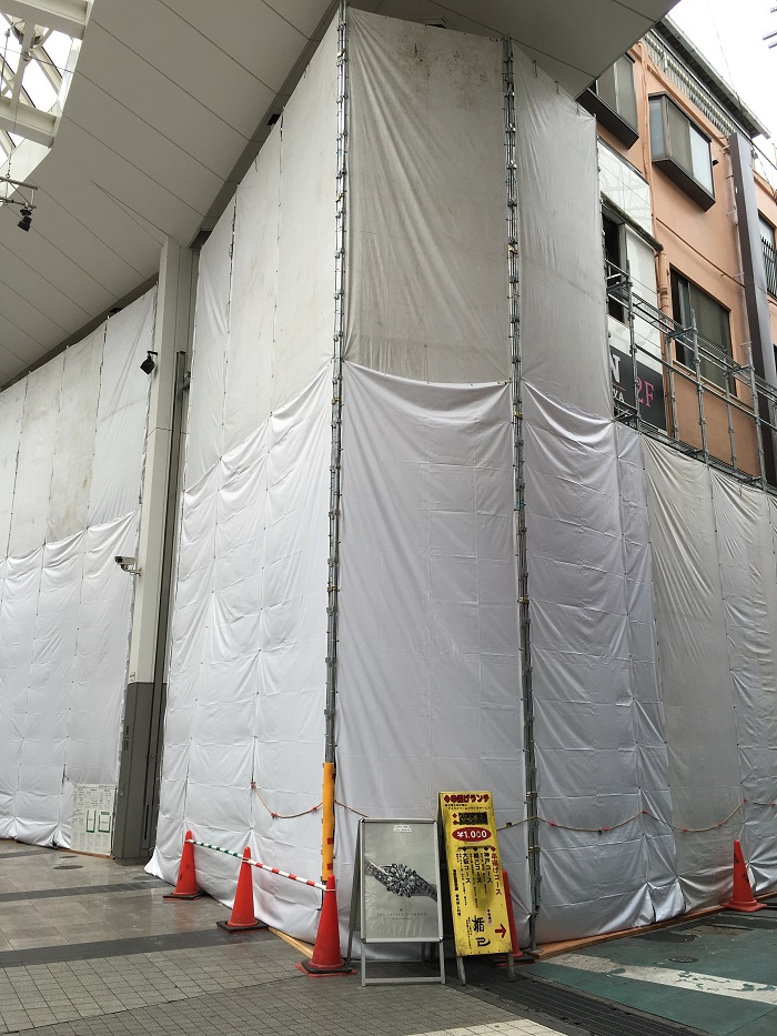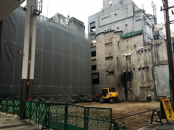 アーケード側はまだ基礎が残っていますが、解体が遅れ起工式に間に合わないためにこのような作業手順となりました。