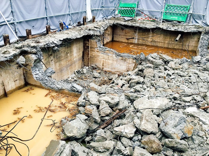 しかし、再建にあたっては地下に残る基礎や杭なども撤去しないと建設できません。
