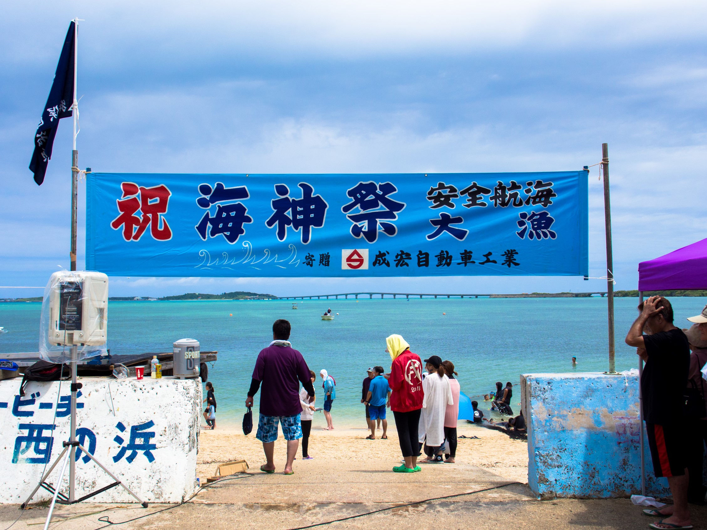 狩俣地区の海神祭は、雪塩工場のすぐそばの西の浜ビーチが会場。