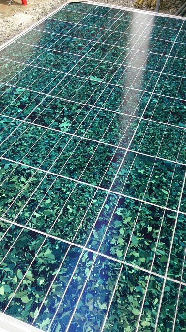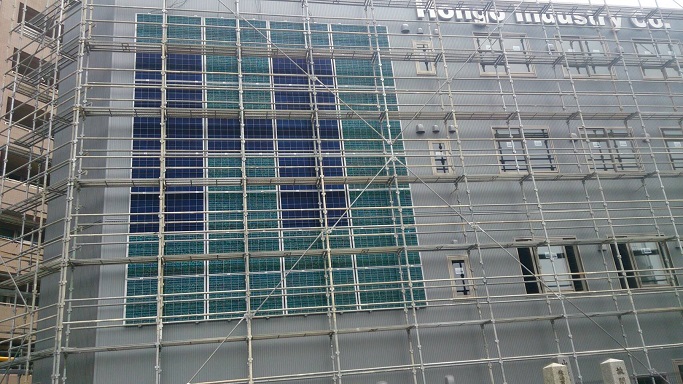 太陽光発電を推奨しているわが社ですから、PRを兼ねて新社屋壁面に使用することにしました!