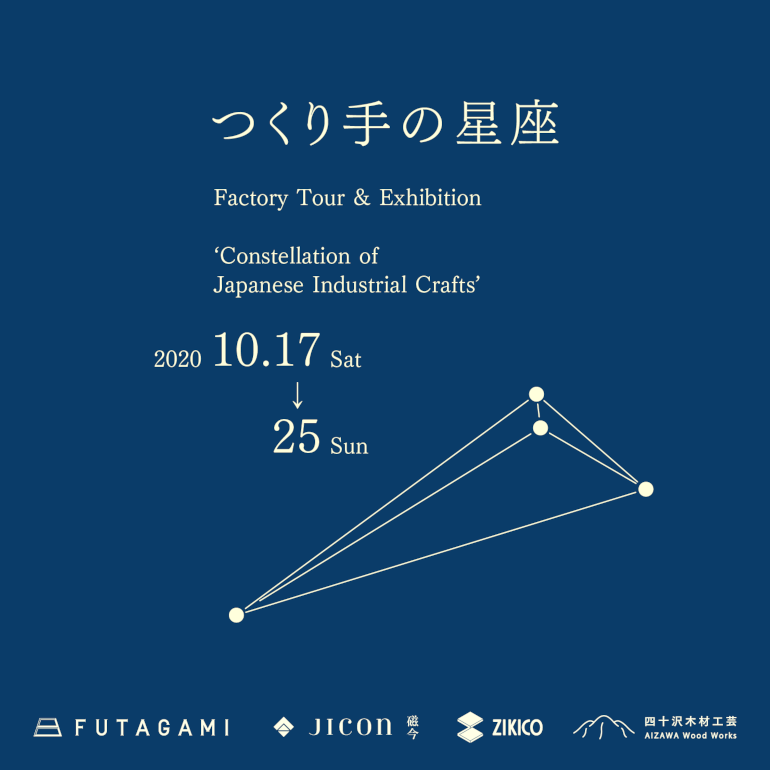 この度「つくり手の星座」と題して、各地のメーカー4社が独自で行ってきた工場見学会などの日程を合わせ、それぞれのメーカーが作ったものを全メーカーが展示します。