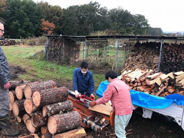 会社では薪ストーブを使うため、業務の合間を見て薪割りに精を出しています。