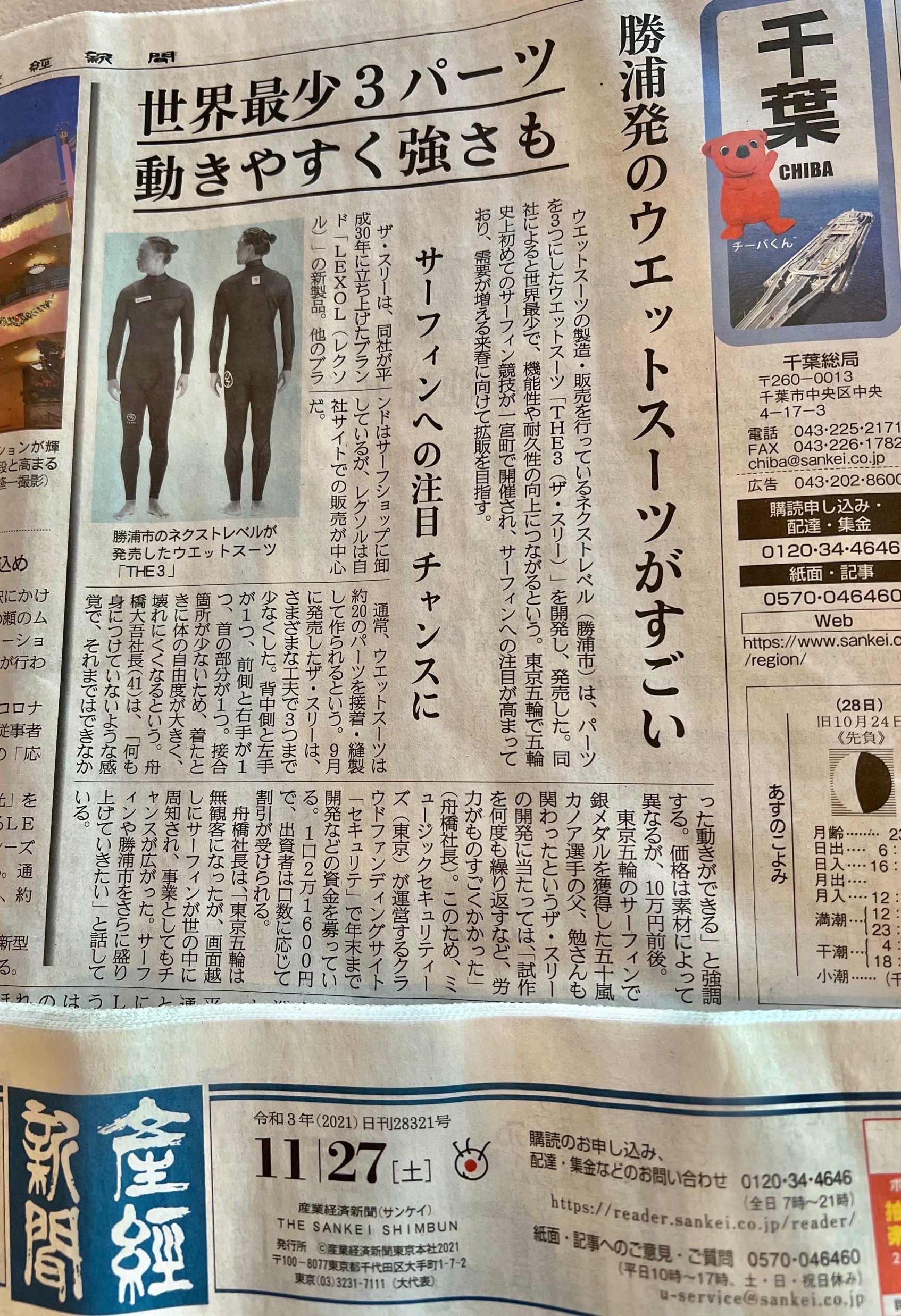 世界初の3パーツウェットスーツ『THE3』プロジェクトが産経新聞に掲載されました!