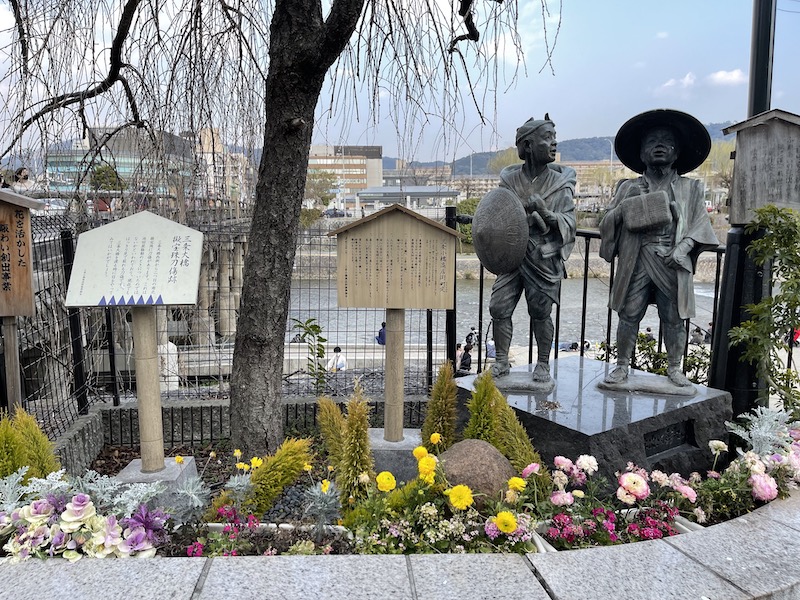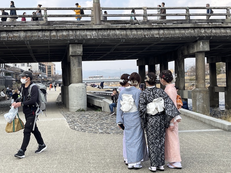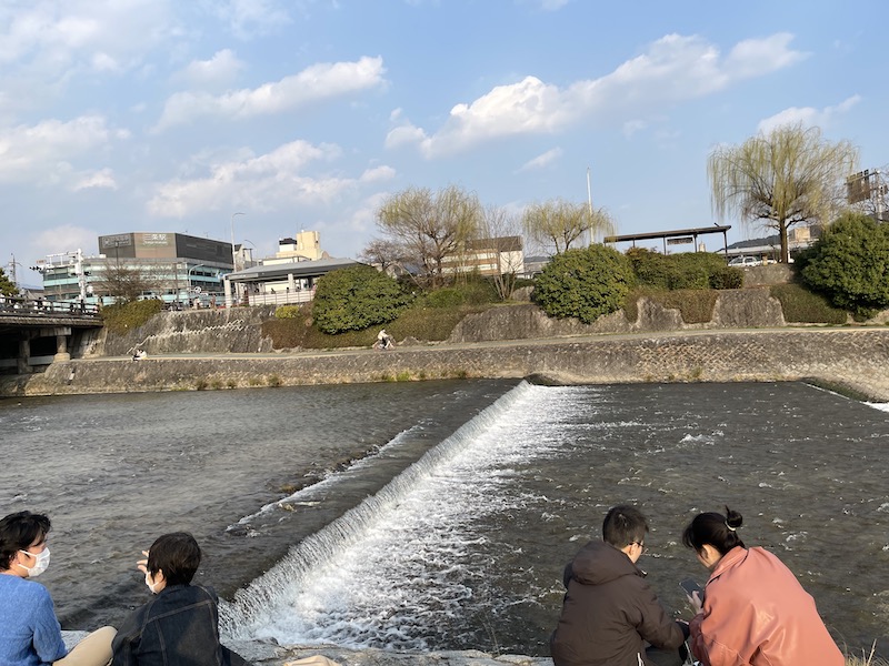 鴨川の三条大橋近くで