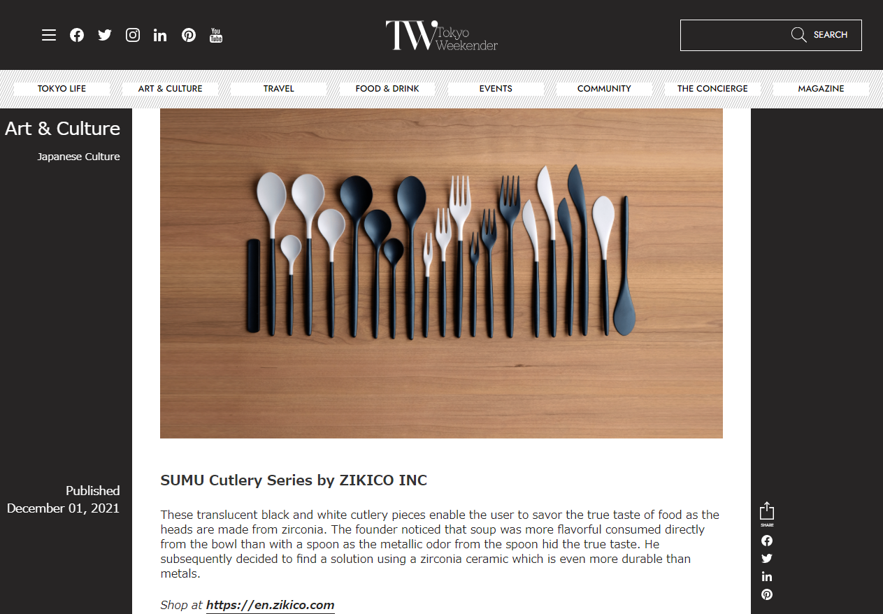 東京ウィークエンダーWeb版にSUMUが掲載されました。 2021年12月3日 味を変えないカトラリーファンド2 みんなの反応 0 0 0 東京ウィークエンダーのWeb版にSUMUシリーズが掲載されました。 紙媒体は、国内の国際空港到着ロビーと、ドバイ万博のジャパン・パビリオンで配られています。