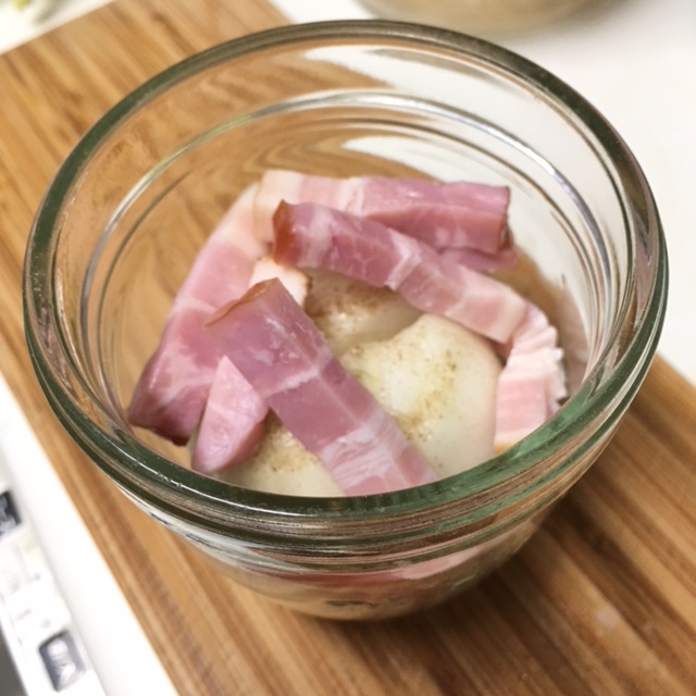耐熱容器に(〇ロゾフのプリンカップが重宝です)入れ