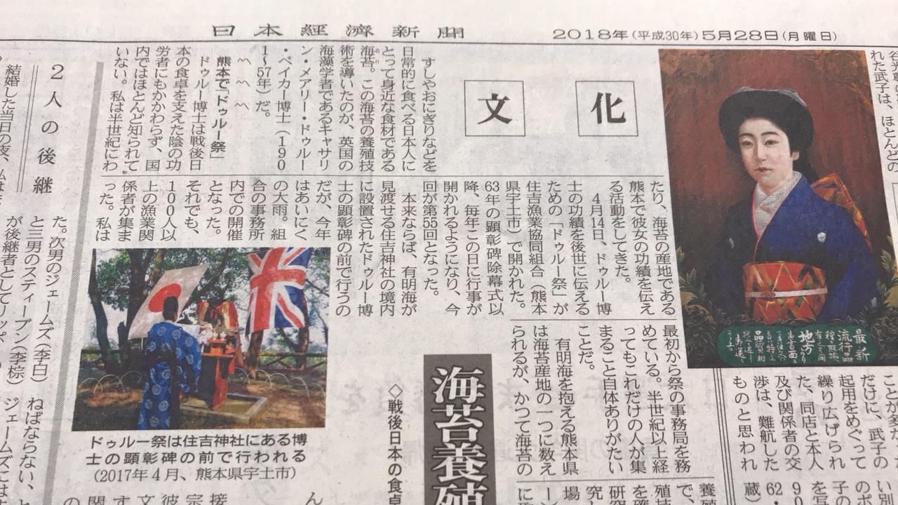 一昨日の日経新聞より 海苔養殖の母