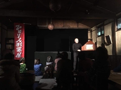 今年の最後に、工房の隣にある ”ござんせ” で人形芝居をしていただきました。