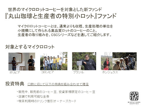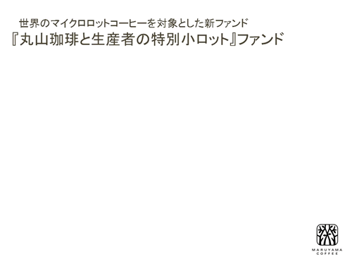 ファンド情報 丸山珈琲と生産者の特別小ロットファンド 株式会社丸山珈琲 会計期間 2016年2月1日 ~ 2017年9月30日 一口 26,425 円 償還率 104.32 % 参加人数 752 人 調達実績 50,700,000 円 ファンド詳細を見る