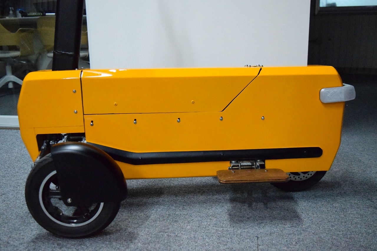 これまで当社で製造販売をしてきたSunameriやXiaomeriより大きくホイールベースを短くし、走行の際に小回りが利く面白い乗り味となっているだけではなく、マンションの前に置いたり、自動車の荷台に積む際に車体が邪魔にならない大きさとなっております。