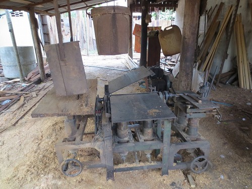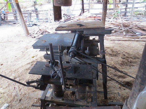 上の写真の機械を利用してこのような机や椅子等を作成します。