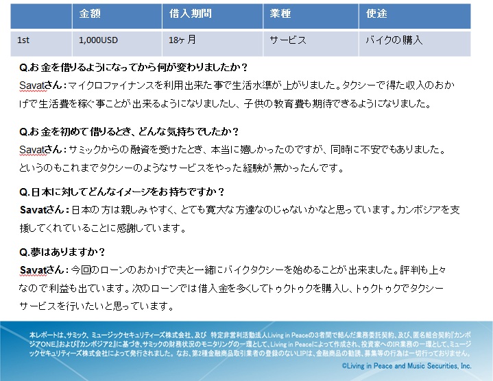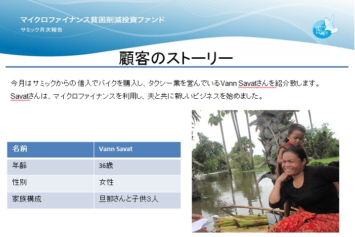 【マイクロファイナンス機関の顧客】 Savatさんの話