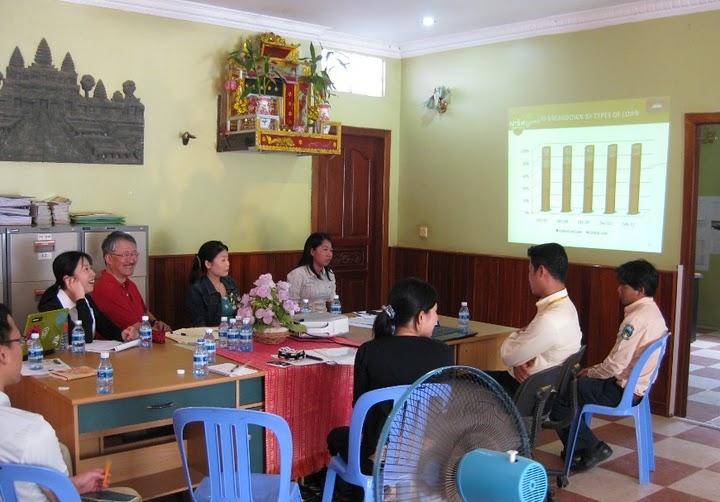 (マイクロファイナンス機関で、センムンさんとパニーさんから説明を受けているところ)