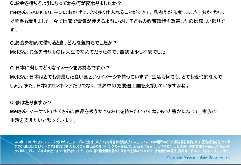 【マイクロファイナンス機関の顧客】 Mei Nanさんの話