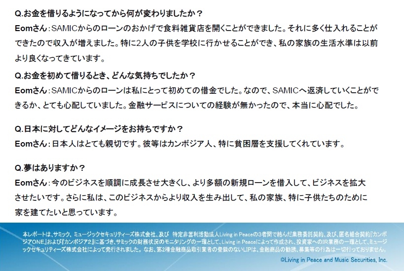 【マイクロファイナンス機関の顧客】 Eom Vannyさんの話
