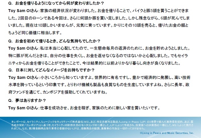 【マイクロファイナンス機関の顧客】 Toy Sam Oiさんの話