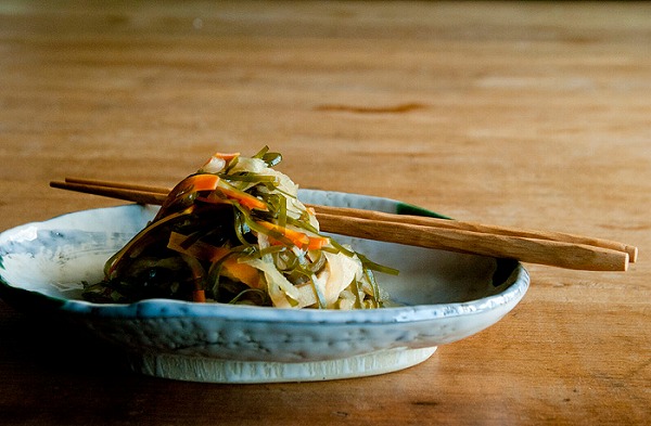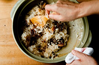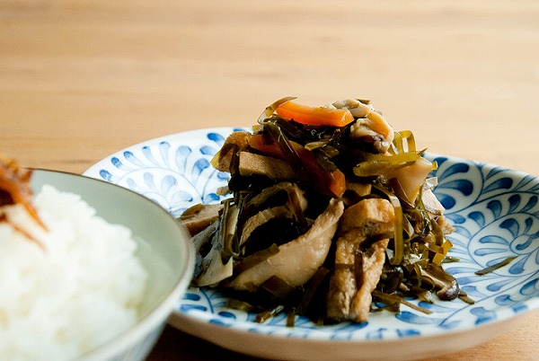 切り干し大根、三陸のやわらかい昆布、人参、油揚げ、高野豆腐をたっぷりの出汁で薄味に炊いています。解凍しただけでも食べられますが、袋ごと湯煎で3分程度温めていただくとなお良いです。