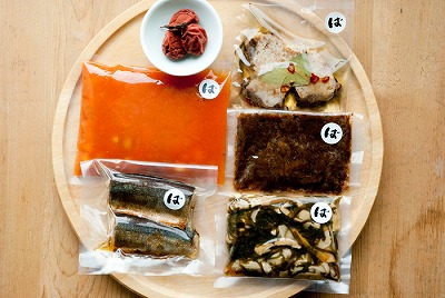 斉吉商店の2階【ばっぱの台所】から、この頃のメニューでお出ししているおかずを1人前のパックでお届けします。どれも田舎の”ばっぱ(おばあちゃん)”がつくる、どこか懐かしい味ばかり。ご夫婦おふたり暮らしの方や、仕事で遅くなった時のおかずにもおすすめです。湯銭で温めるだけですぐに召し上がれます。8月末までの期間限定商品です