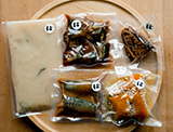 【原材料について】 ※スープの原材料ついては上記をご参照ください秋鮭のレモンバター焼き 秋鮭(三陸北部沖)、バター、レモン、塩こしょう、小麦粉 (原材料の一部に小麦、乳を含む) 一口金のさんま さんま(北海道または三陸)、三温糖、醤油、清酒、しょうが、みりん、還元水飴、玉砂糖、魚醤 (原材料の一部に大豆、小麦を含む) さばの味噌煮 さば(三陸北部沖)、味噌、清酒、砂糖、生姜、みりん(原材料の一部に大豆を含む) 切り干し大根と昆布の煮物 切干大根、人参、昆布、高野豆腐、油揚げ、昆布つゆ、みりん、清酒 (原材料の一部に小麦を含む) 高野豆腐ときのこ煮 高野豆腐、油揚げ、しめじ、椎茸、出汁(利尻昆布、さんま節)、みりん、薄口しょうゆ、砂糖、塩 (原材料の一部に大豆、小麦を含む) 賞味期限:全商品:冷凍保管製造日より90日保存方法:要冷凍(-18℃以下で保存)