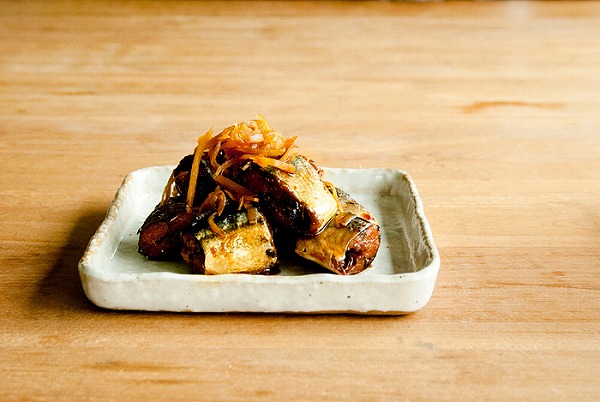 斉吉の定番、「金のさんま」を一口大にカットしました。千切りでも、鬼おろしでも。炊きたてのごはんに一口金のさんま、塩茹でして軽く絞った大根の葉を混ぜて。冷めても美味しいので、お弁当やおにぎりにもどうぞ。