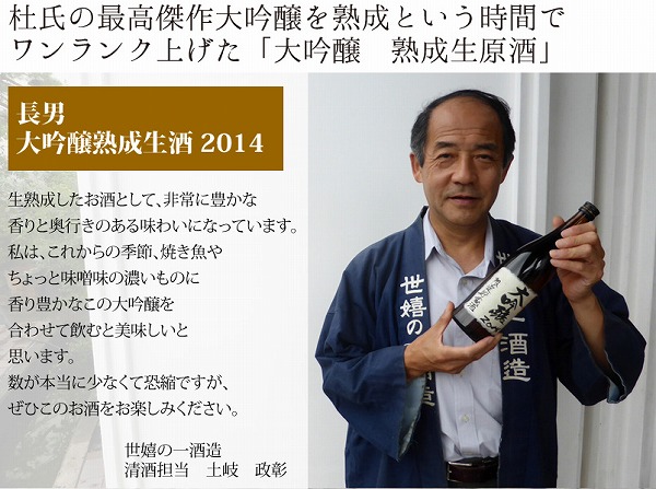 酒類:大吟醸酒酒米:山田錦精米歩合:40%アルコール度数:16-17度日本酒度:+4アミノ酸度:0.8