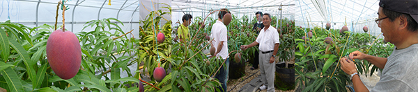 極寒の北海道で、温泉熱や雪、冷水といった自然エネルギーを利用して南国フルーツであるマンゴーを生産する、その実現にはたくさんの課題がありました。4年前の2011年、弟子屈町のハウス2棟で1年間の実証を行い、まずはマンゴーが栽培可能であることを確認することができました。その後も何度も試行錯誤を重ね、鹿児島県の先輩農家にマンゴー育成の指導をしてもらったりしながら、少しずつマンゴー栽培の技術に磨きをかけてきました。