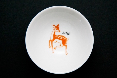 2009年は躍動感のある雄鹿、2010年はおっとり雌鹿をおちょこの底面に配しています。