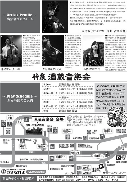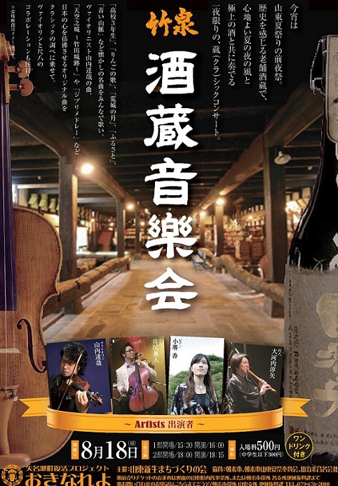 田治米です。暑い日が続きますね日本列島40度越えの方が届く中ここ但馬も連日猛暑日が続きますさて昨年始まりました地域イベント竹泉 酒蔵 コンサートが今年も山東町夏祭り前夜祭の8月18日日曜日に開催いたします