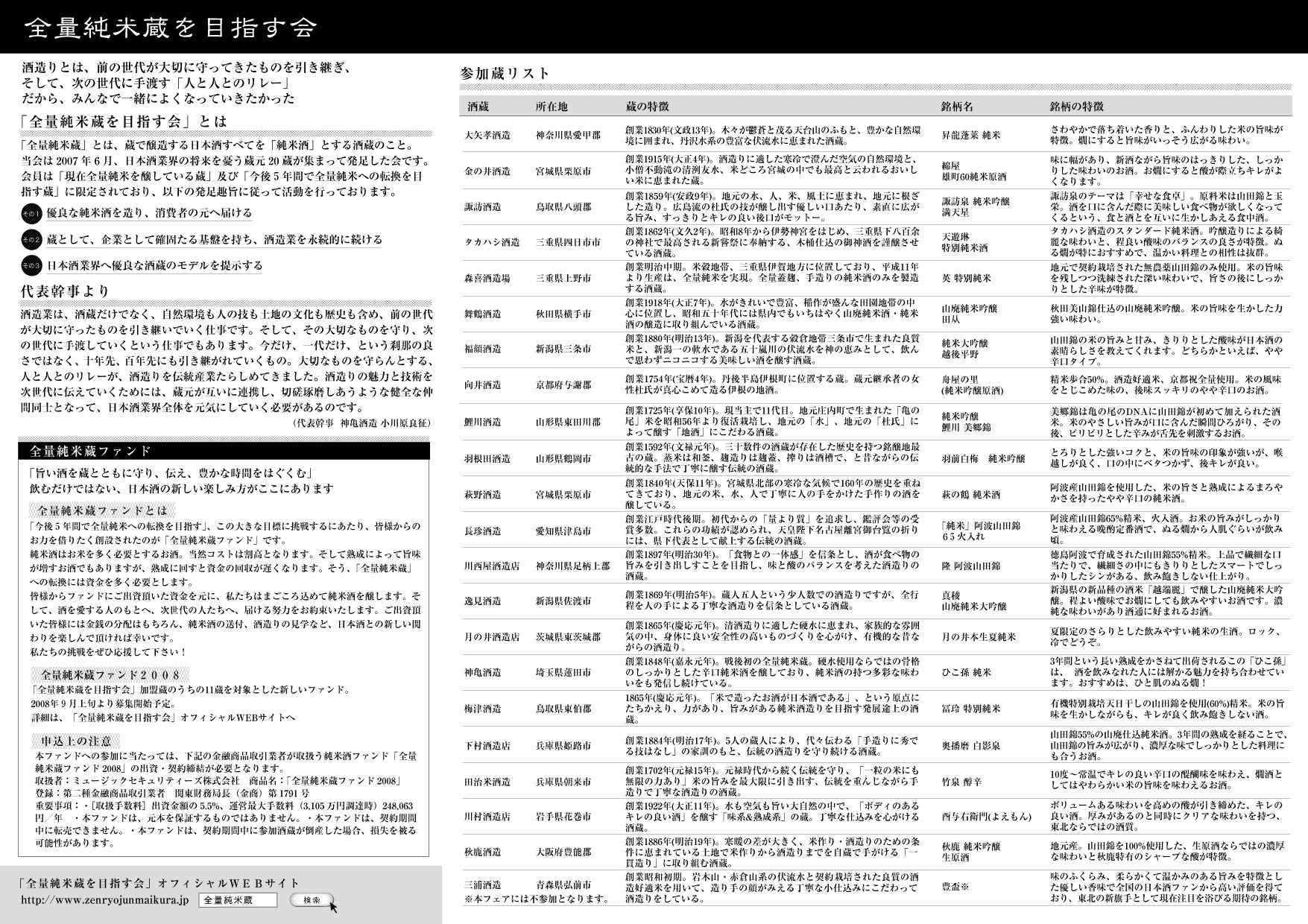 今回、「全量純米蔵ファンド2008」の参加蔵の蔵元の方たちの想いを