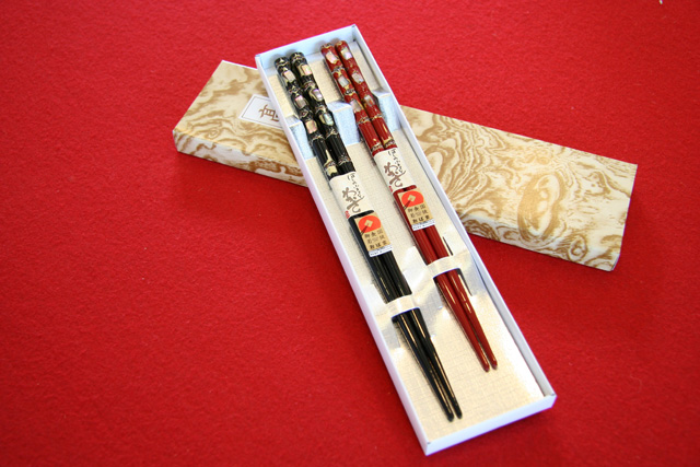 古代より受け継がれてきた職人達の技が、現在の若狭塗箸独特の豪華絢爛模様を作り上げ、自分専用の箸として大切に使われています。