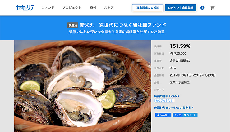 いくつかファンドを挙げてみます。「新栄丸 次世代につなぐ岩牡蠣ファンド」は良かったですよ。償還率が約150%。5割上がって、オマケで牡蠣も沢山もらえました。まさにおいしいファンドです。